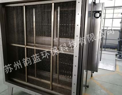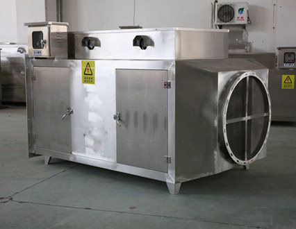 含油烟颗粒物的废气吸入高低压板式末端废气处理设备后,其中部分较大的有雾滴、油污颗粒在均流板上由于机械碰撞、阻留而被捕集。